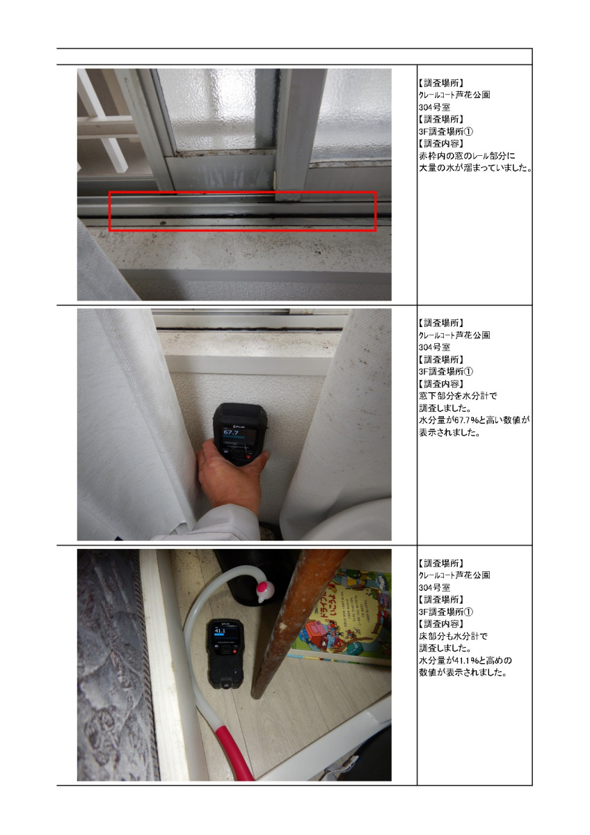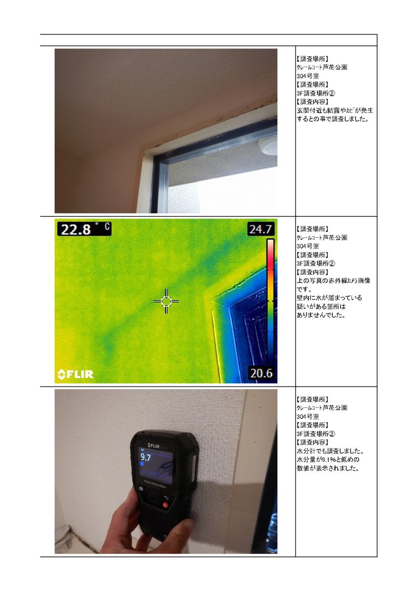 赤外線カメラでは分かりづらい場合の壁面内部の水分量を水分計を使用して調査可能です。