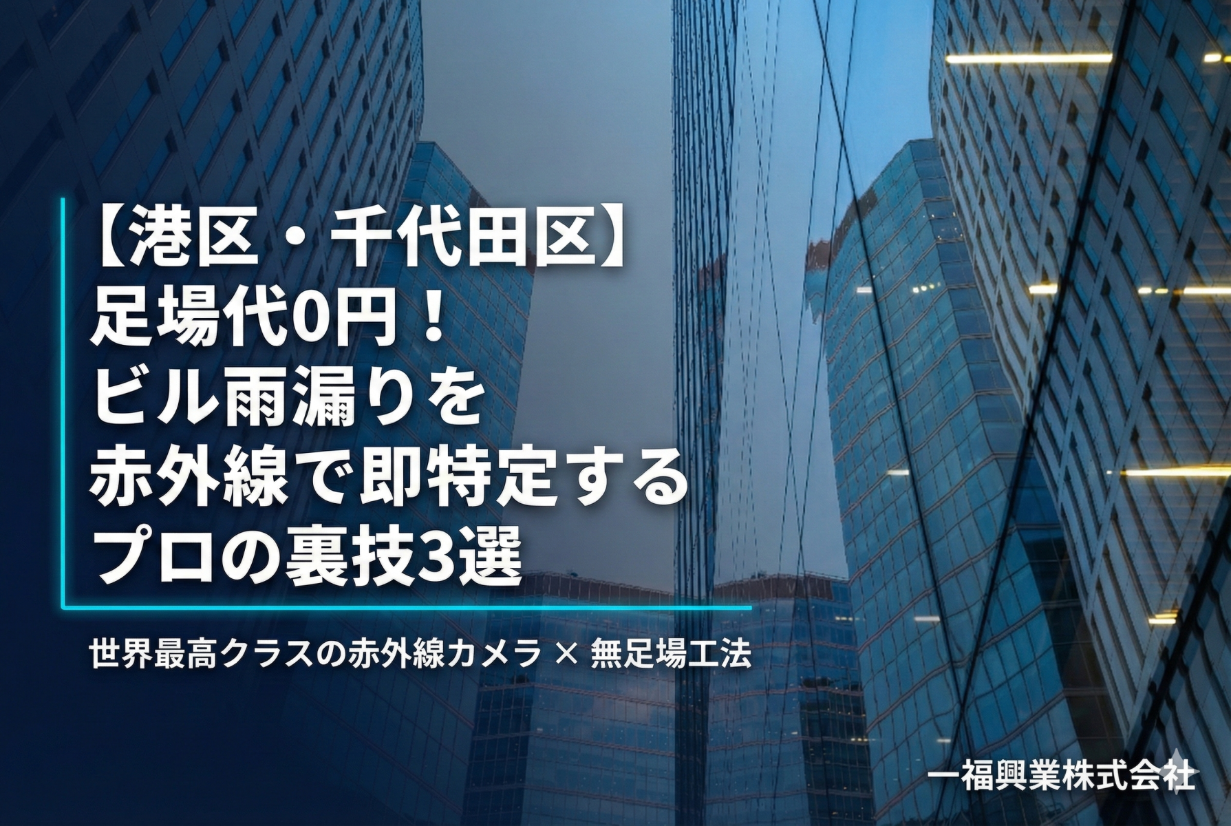 千代田区・港区のビルオーナー必見。高額な足場は不要です。世界最高クラスの赤外線カメラとブランコ工法を駆使し、他社が見抜けなかった雨漏り原因を低コストで特定する現場の裏側をスタッフが解説。無駄な工事費を削減する3つのポイントとは?